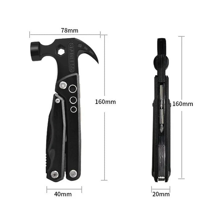 12-in-1 Camping Multitool – Folding Hammer Pliers & Stainless Steel Outdoor Survival Tool