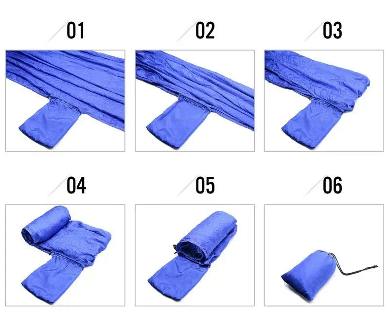 Take comfort anywhere with our ultra-light and compact hammock. Folded into its built-in storage bag, it fits easily into your backpack, allowing you to travel light while always having a cozy resting spot.