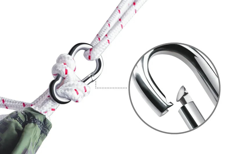 Enjoy a quick and effortless setup with our intelligently designed hammock. The aerospace-grade aluminum carabiners and durable suspension ropes ensure a secure attachment in just a few simple steps.