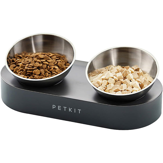 Materials: Food-grade stainless steel (bowls), BPA-free ABS (stand)