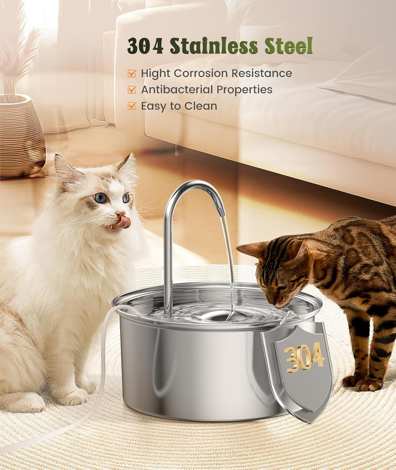 Stainless Steel Water Fountain for Cats & Small Dogs